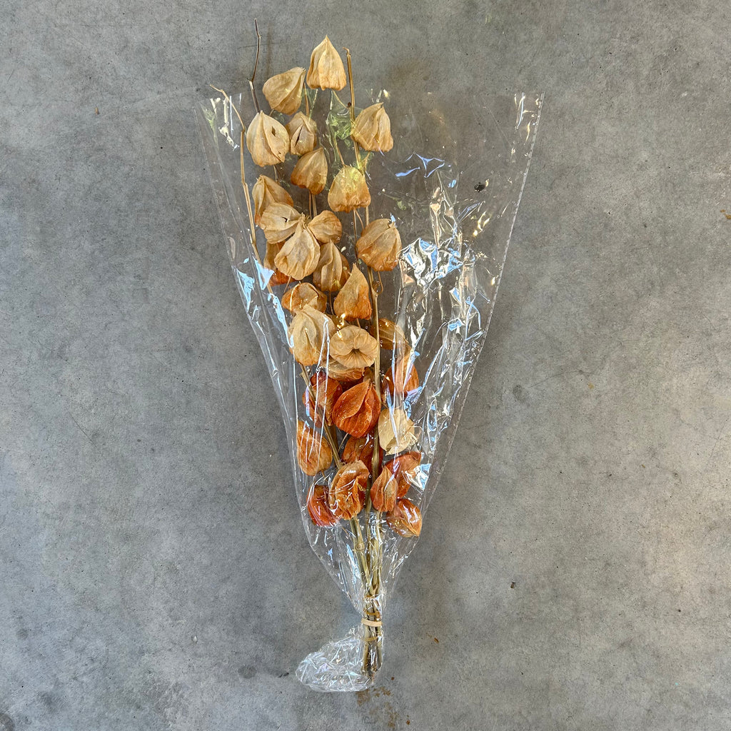 Five beautiful stems of dried chinese lanturns.