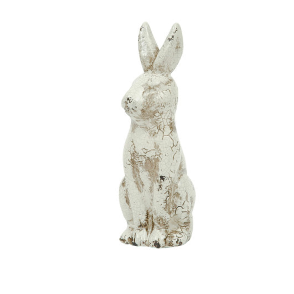 A ceramic rabbit in a distressed cream colour.  Great for spring but simple enough to be out all year round.