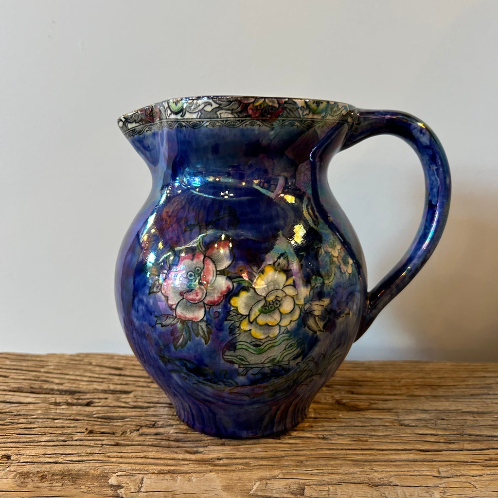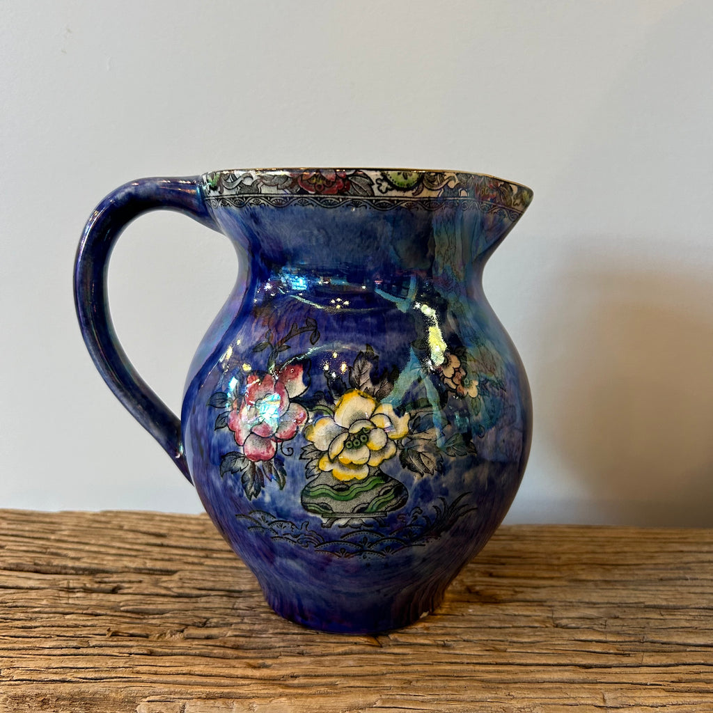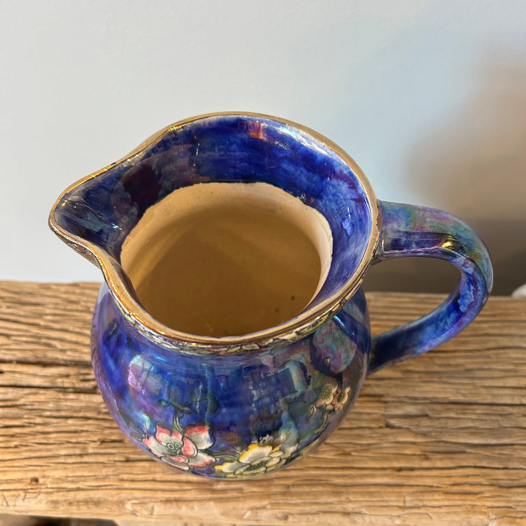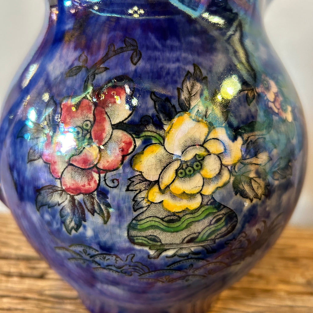 Designed by Arthur Wood this cobalt blue vase has a pearlescent glaze. A good size with pretty botanicals makes this a great display piece.