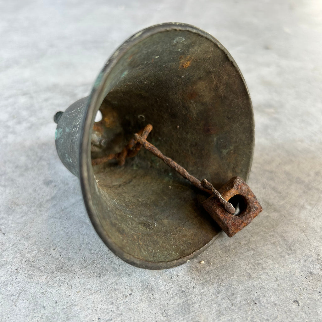 A nice antique bell with a classic shape. I piece is broken from the top but still an good addition to your collection