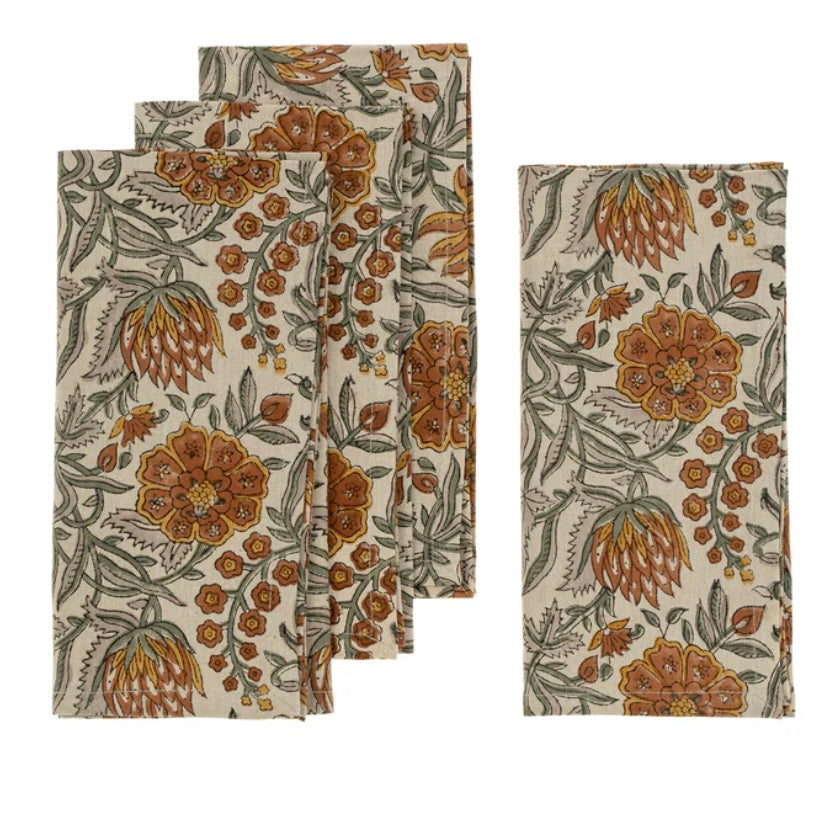 Enhance your table setting with the Rosalind Block Print Napkins, set of 4. Featuring rich fall-inspired hues, these napkins are hand block printed using traditional techniques, making each piece unique. Perfect for casual dinners to festive gatherings, adding a touch of artisanal beauty to every occasion.