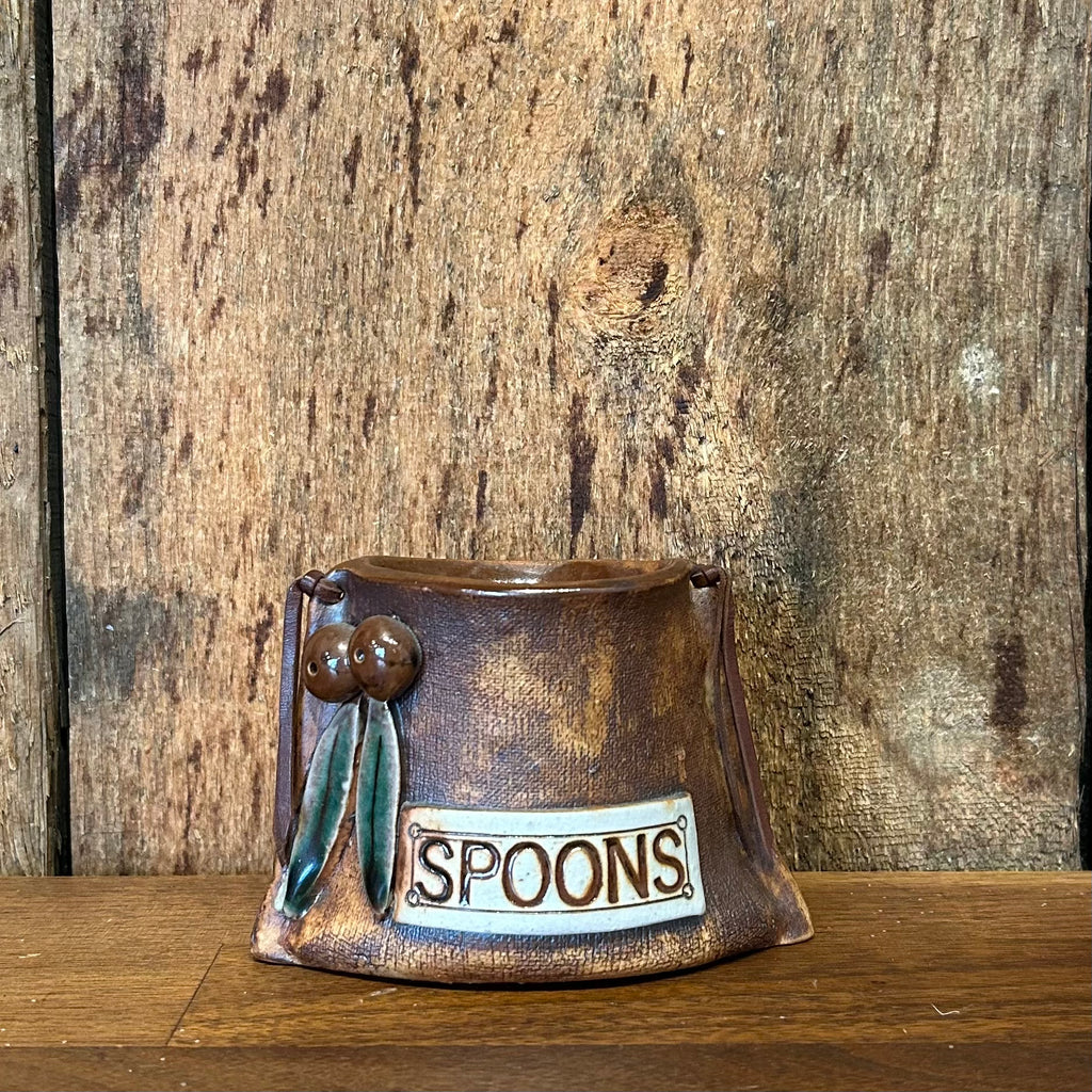 A cute vintage pottery spoons holder. A fun addition to your kitchen counter.