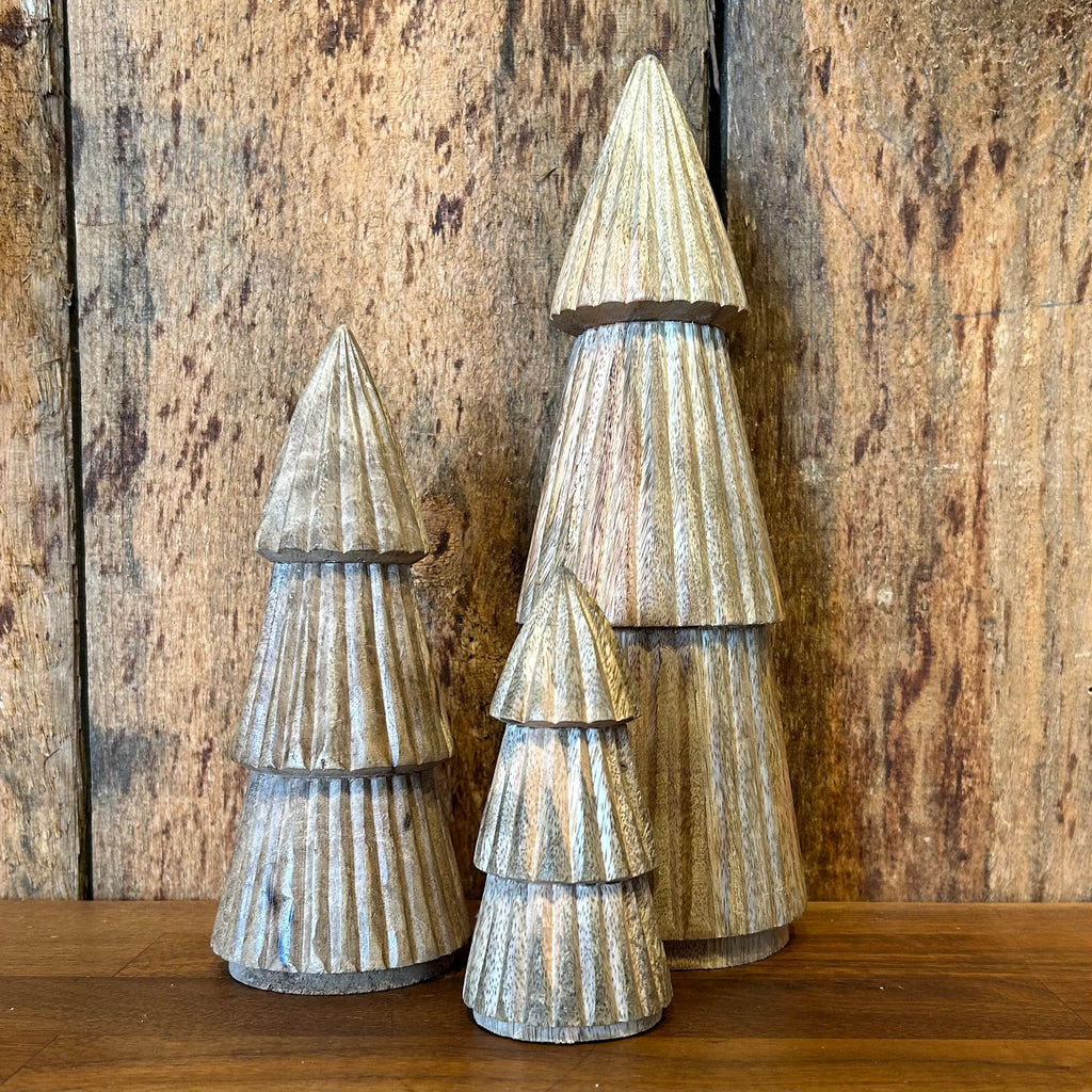 Hand carved from sustainable mango wood, this natural interpretation of a Christmas tree adds a festive touch to mantles, bookcases and coffee tables. Minimalist and organic in design, it subtly nods to the season while complementing home decor.