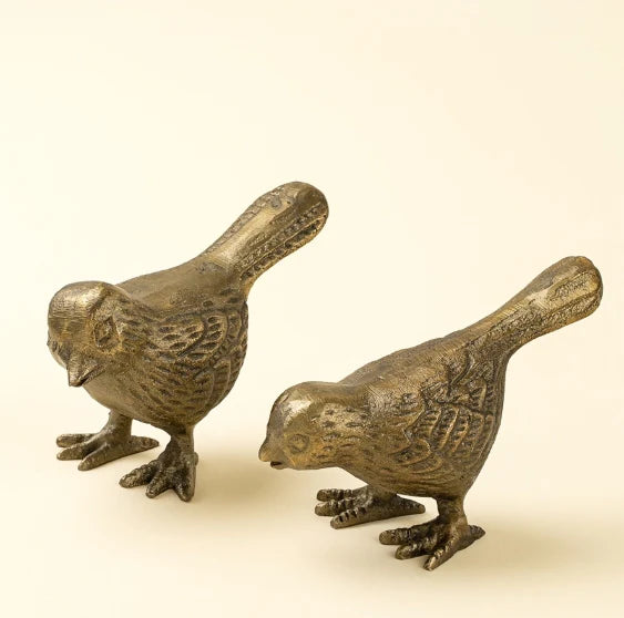 Delightfully detailed and full of character, the Cast Iron Sparrow bring charm and storybook whimsy to any shelf or tabletop. Finished in antique brass with carved detailing, it is crafted using traditional methods passed down through generations of skilled artisans in India. They make a thoughtful gift idea, a cute paperweight, or a unique addition to your curated gift aesthetic.