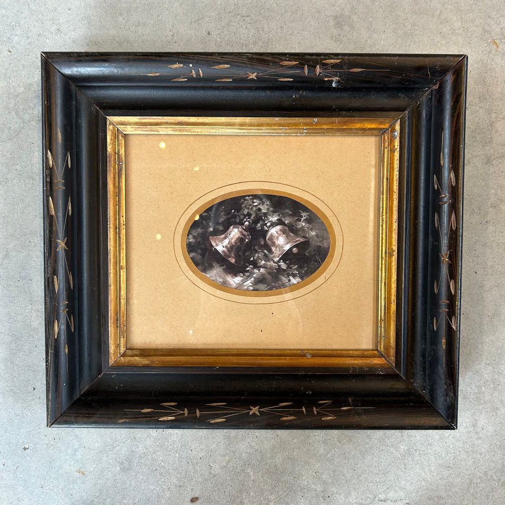 A beautiful image of Christmas bells printed on linen paper and framed in a fantastic antique frame with the original matting.