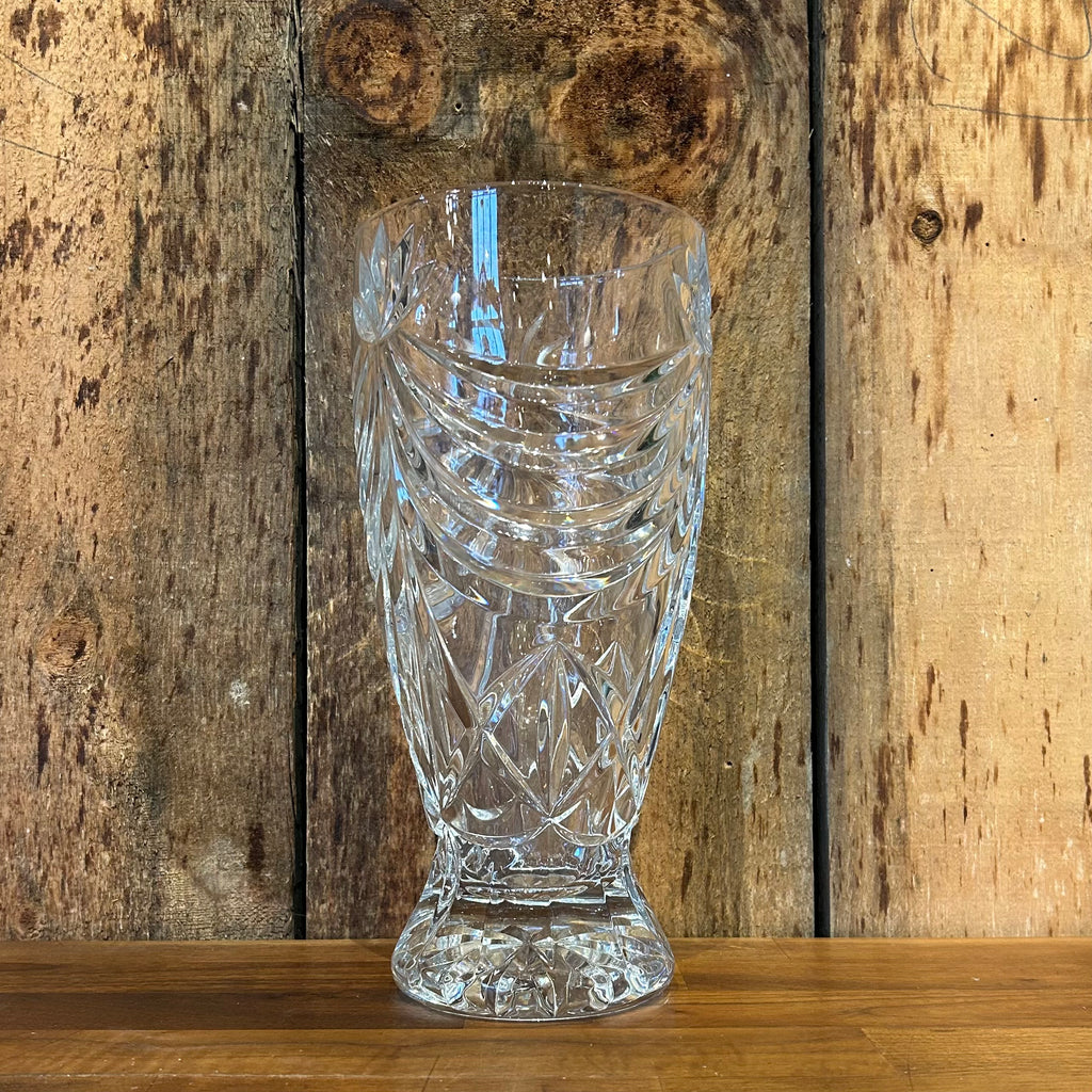 A beautiful Cristal d’Arques vase with a ribbon and fan design. A great size for the table and looks beautiful with fresh flowers or all on its own.