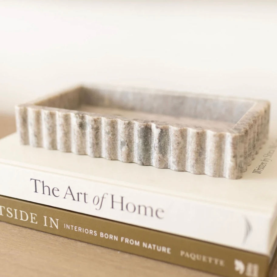 Our fluted marble tray is expertly crafted and features a unique scalloped design that adds elegance to any room. Made from high-quality grey marble, this tray is durable and easy to clean. Style it on your countertop and pair it with our Lovefresh hand soap & cream to transform your kitchen or bath into a stylish, elevated sink organizer.