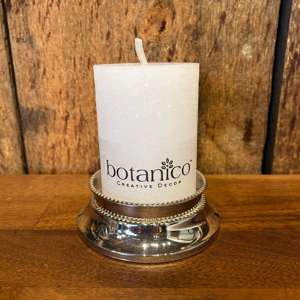 A pretty vintage pillar candle holder perfect to add a bit of shine to your display.