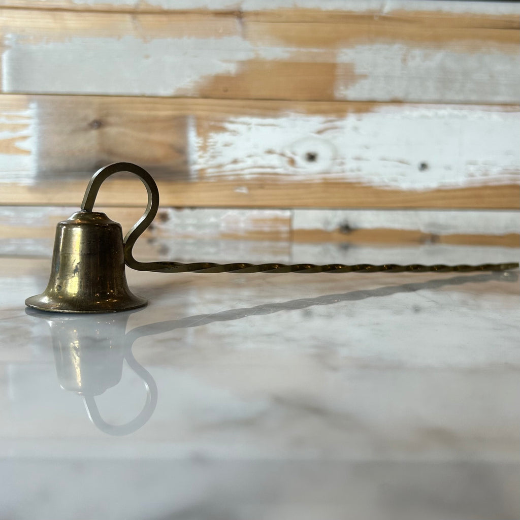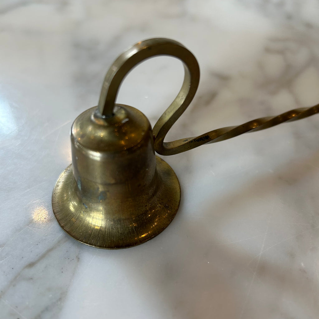 A great vintage brass candle snuffer with twist handle, large cap and an exaggerated swoop on top.