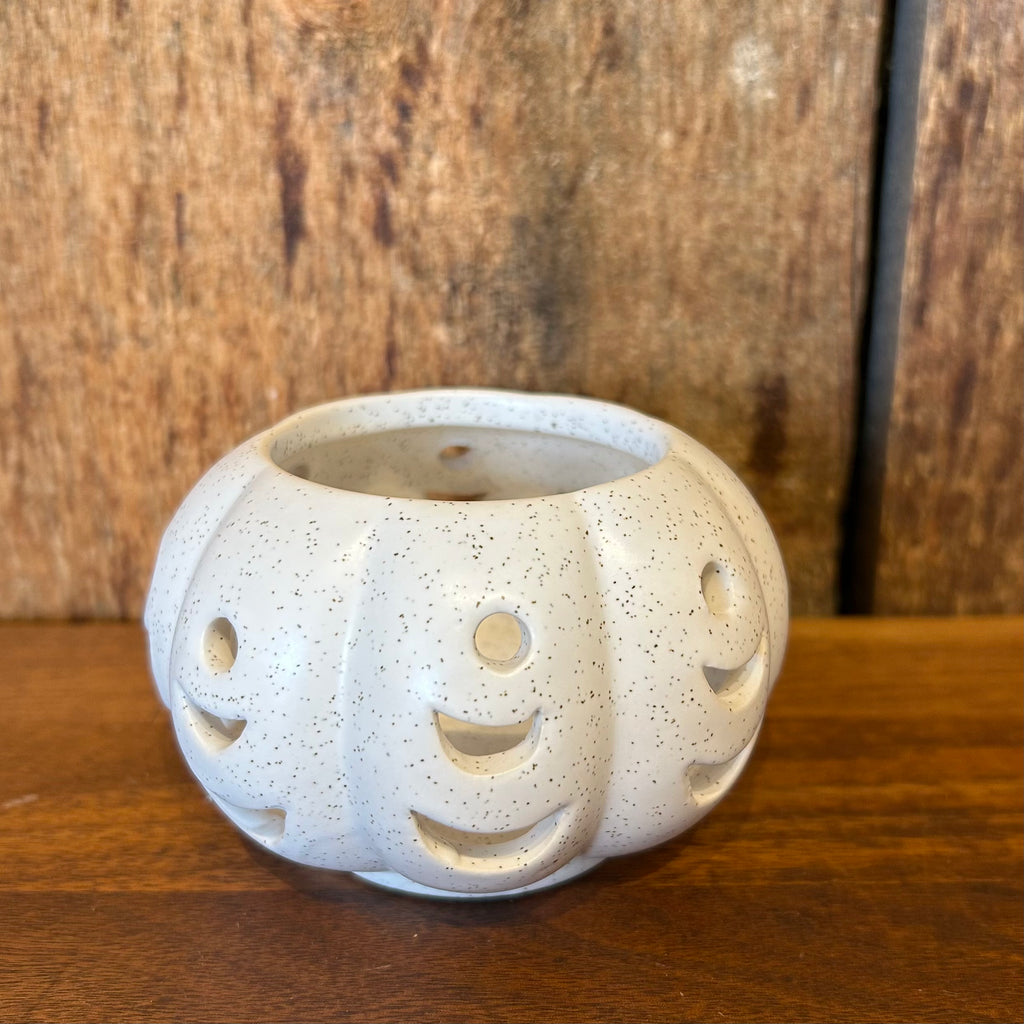 A sweet white speckled ceramic tea light holder for your fall decor.
