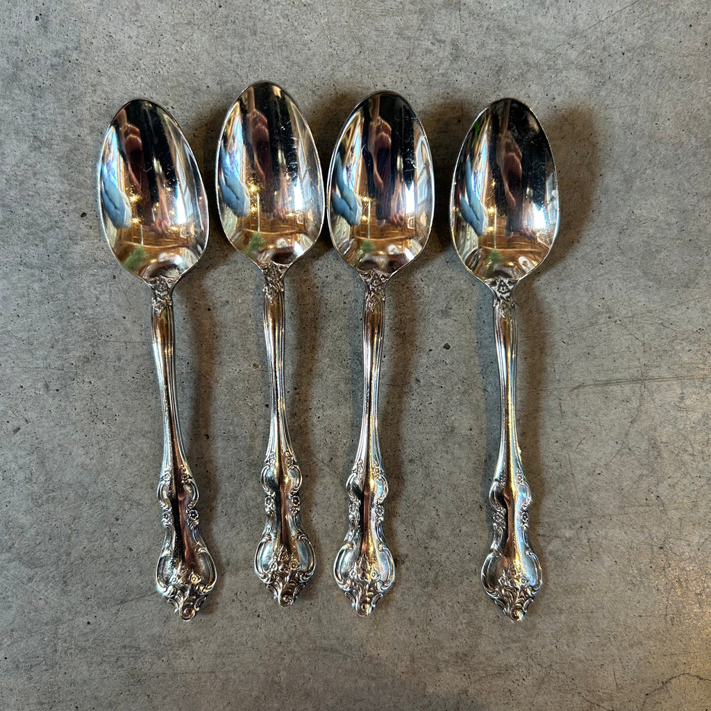 Pretty silver plate tea spoons with a cello handle. Perfect for your afternoon tea.