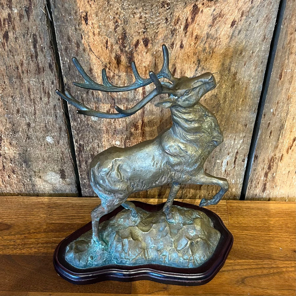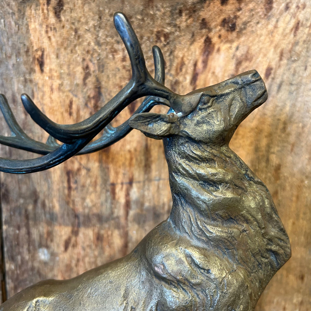 A fantastic vintage brass deer sculpture mounted on a wood base. Wonderful for your holiday decor or any time of year.
