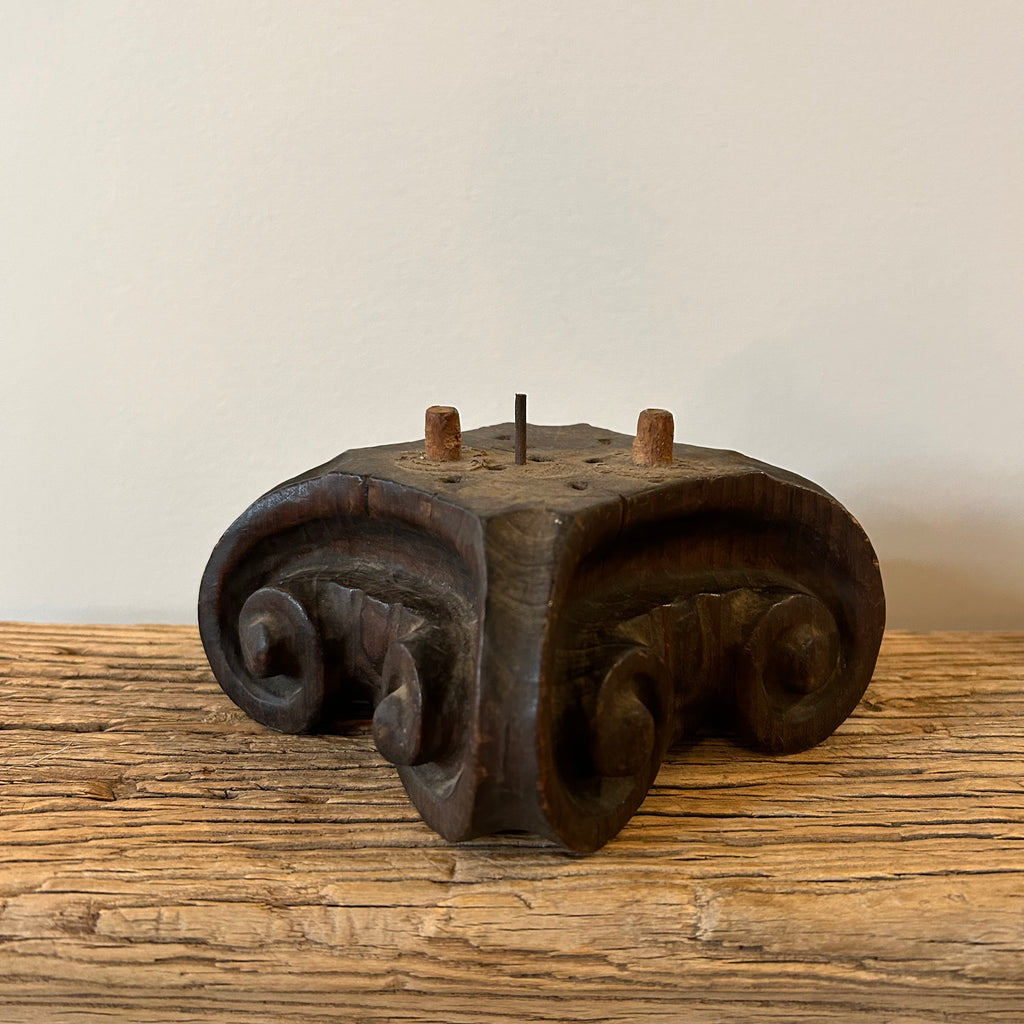 This beautifully hand carved base would be perfect for a large pillar candle. It would also be wonderful as a riser for a plant or an objet d’art!