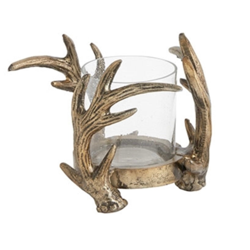 So pretty. Antlers surrounding a glass votive holder. Lovely at the centre of your table or any tablescape.