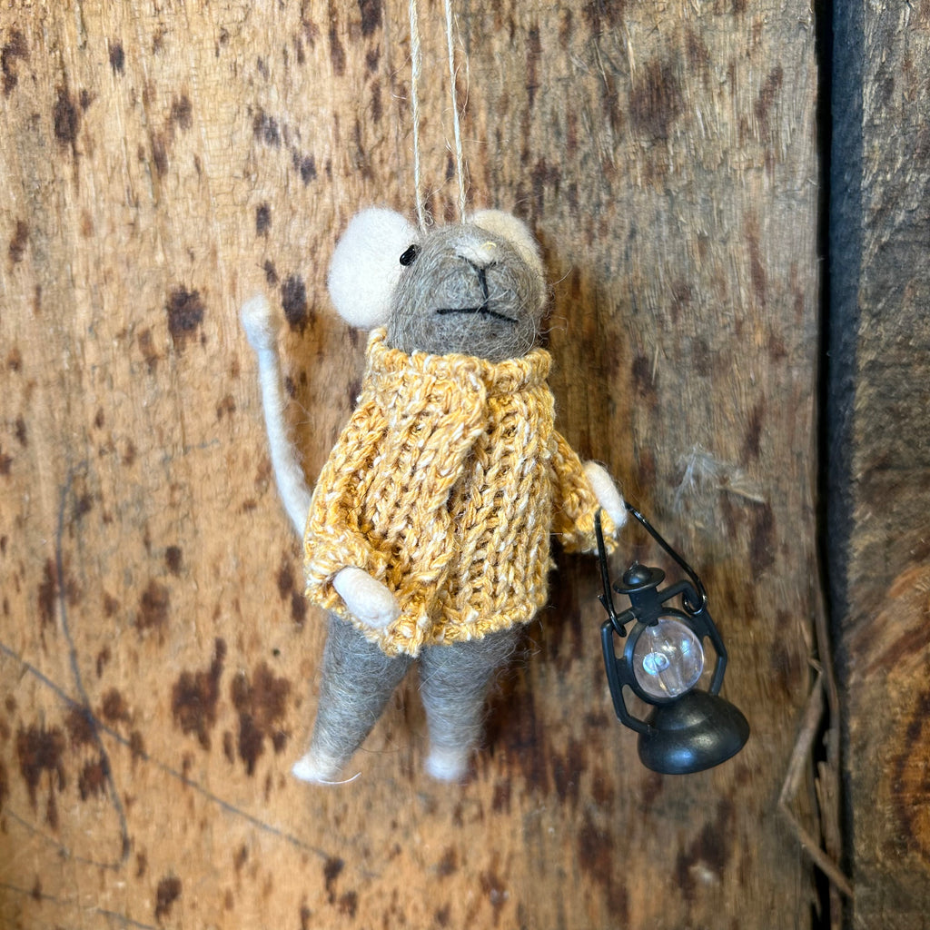 These cuties are charming hung on a festive tree, on wine bottles or sitting on the shelf supported by their wire tails. Made from wool.