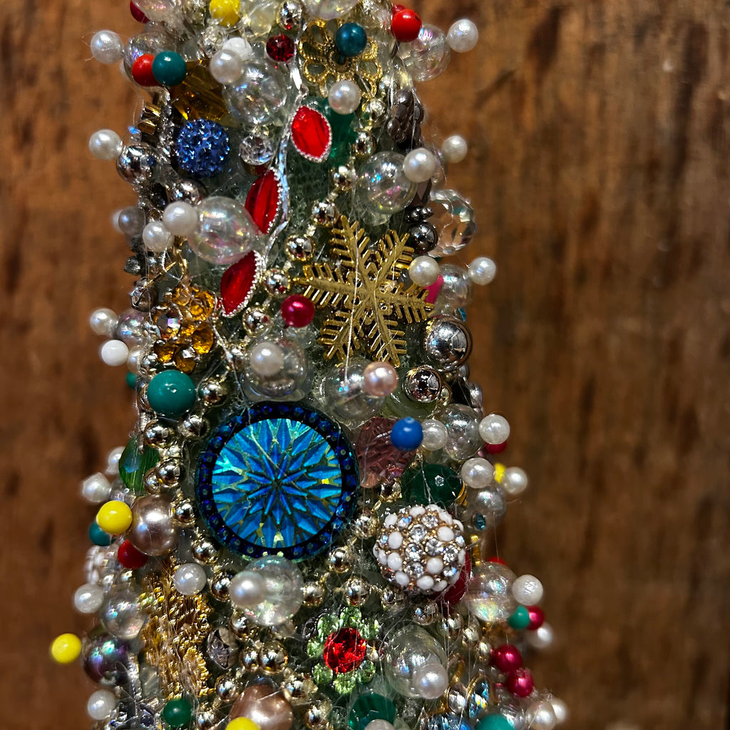 A beautiful tree made of repurposed jewellery. An interesting way to add some sparkle to your holiday decor.