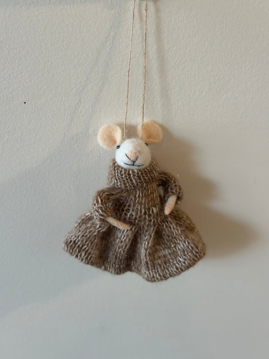 These cuties are charming hung on a festive tree, on wine bottles or sitting on the shelf supported by their wire tails. Made from wool.