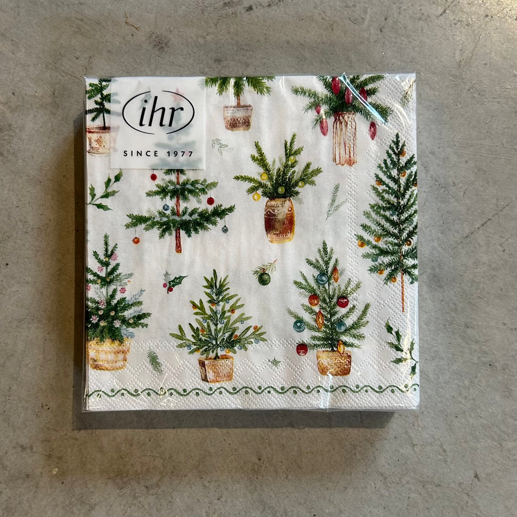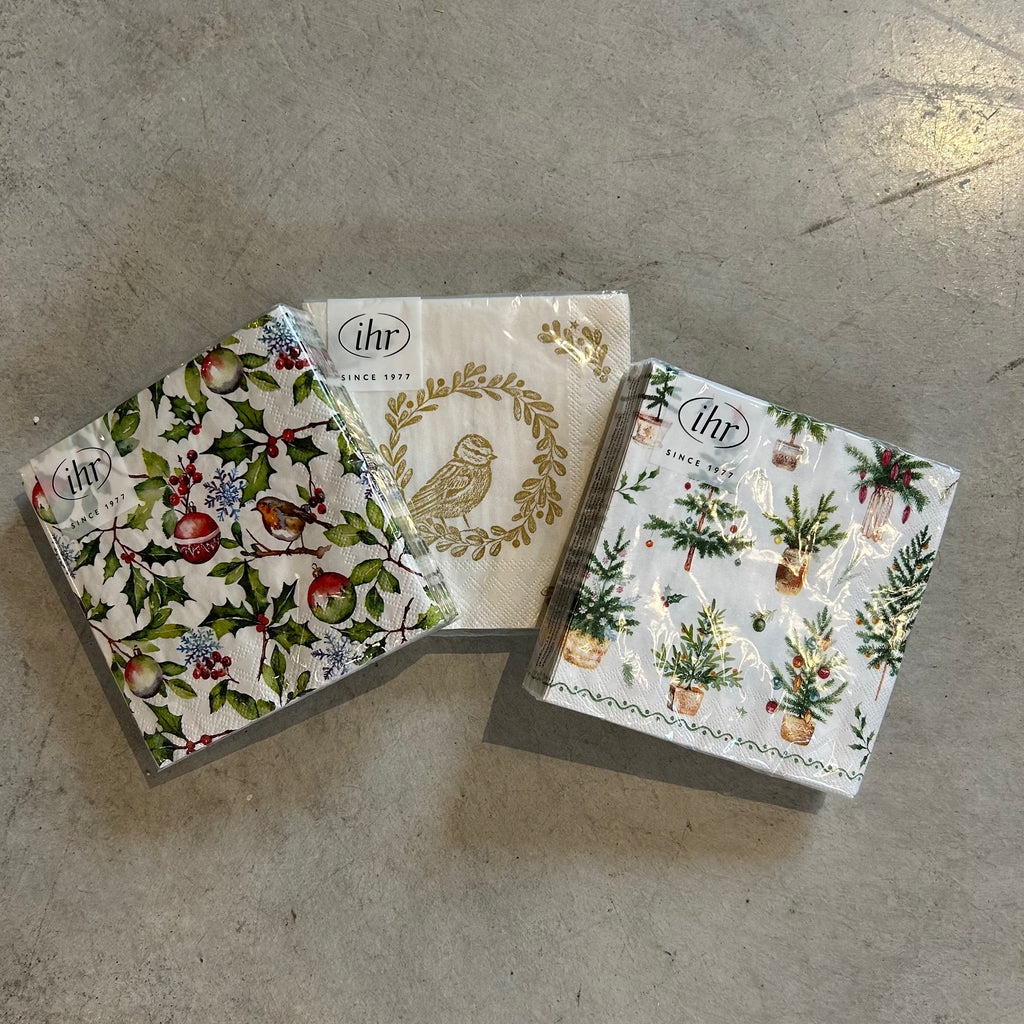 The prettiest cocktail sized napkins come in a package of 20, are 3 ply and measure 5” square.