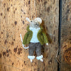 These cuties are charming hung on a festive tree, on wine bottles or sitting on the shelf supported by their wire tails. Made from wool.