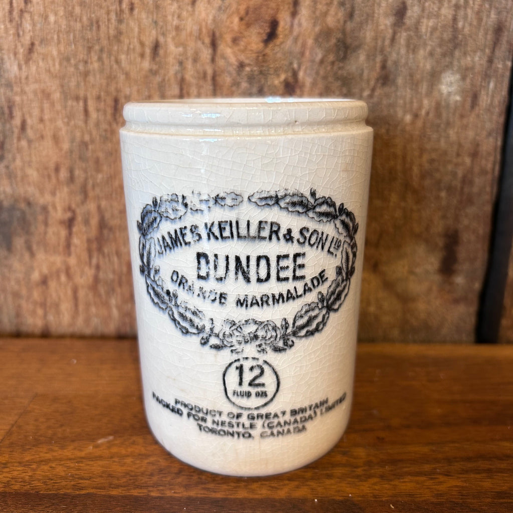 A great old crockery orange marmalade jar. Great for flowers, pencils or utensils!