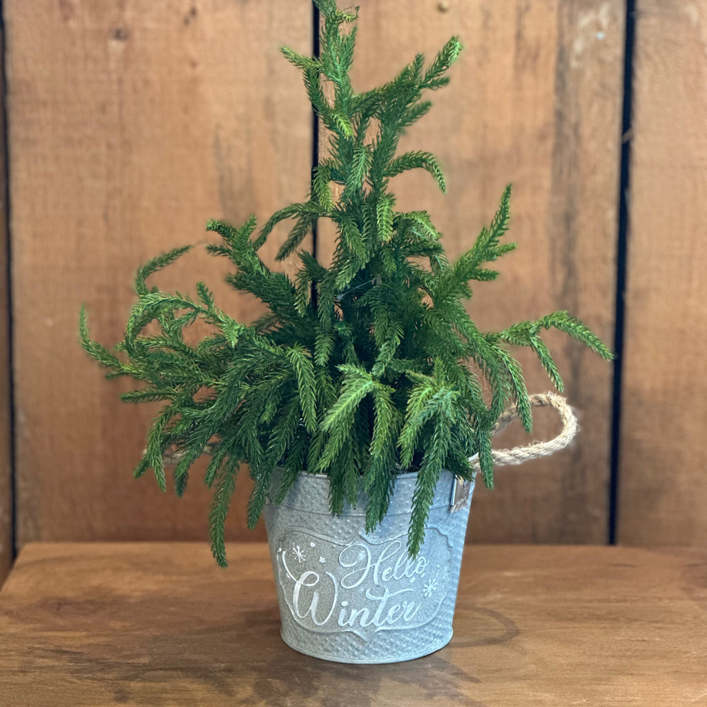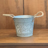 This tin planter is perfect for small cedar trees and plants.