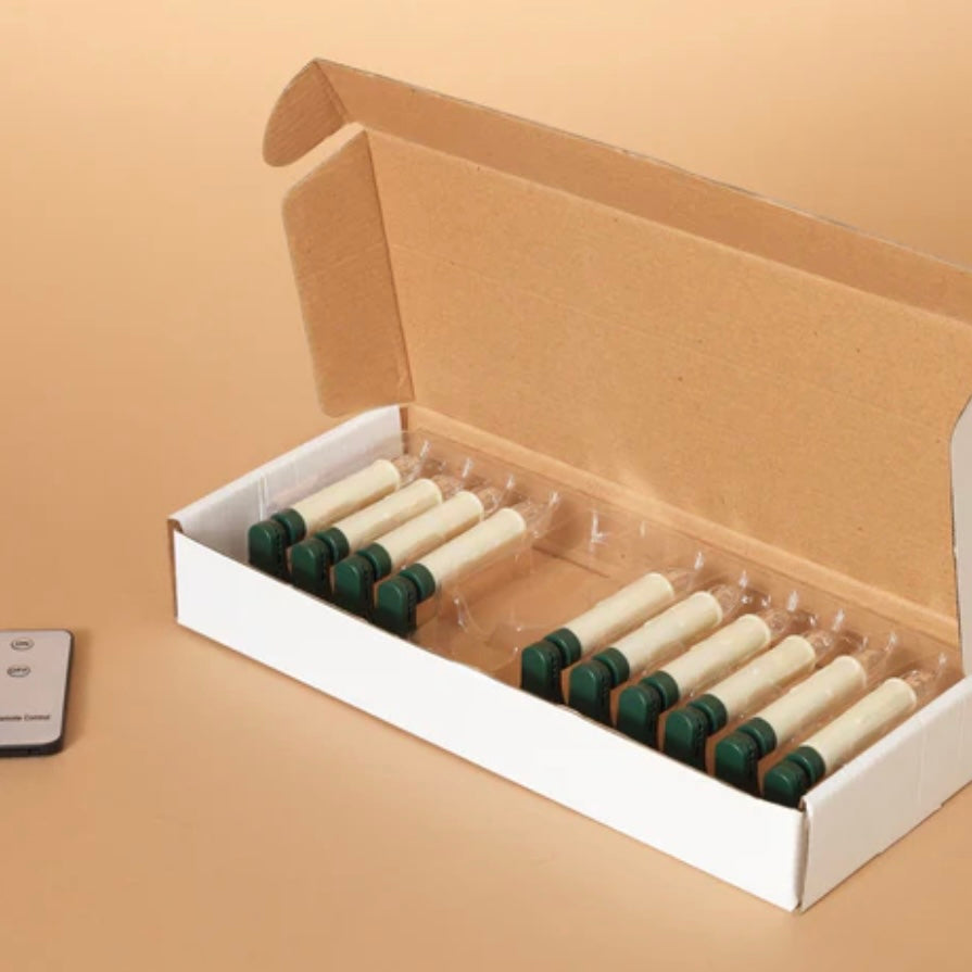 White infrared remote control candle lights. 10 piece set with remote control. Add light to your tree or your mantel with this lovely old world candles.
