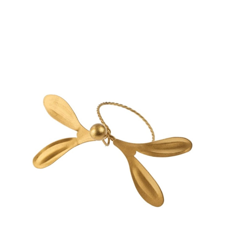 Infuse a subtle festive ambiance into your holiday tablescape with the Mistletoe Napkin Ring. With a rich golden finish that gives it the timeless feel of a cherished collection piece, it adds charming elegance when wrapped around a napkin at your place setting.