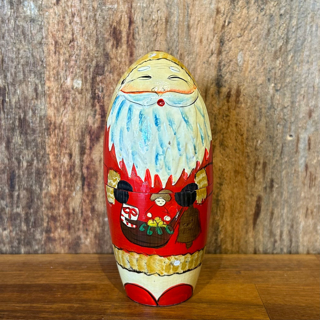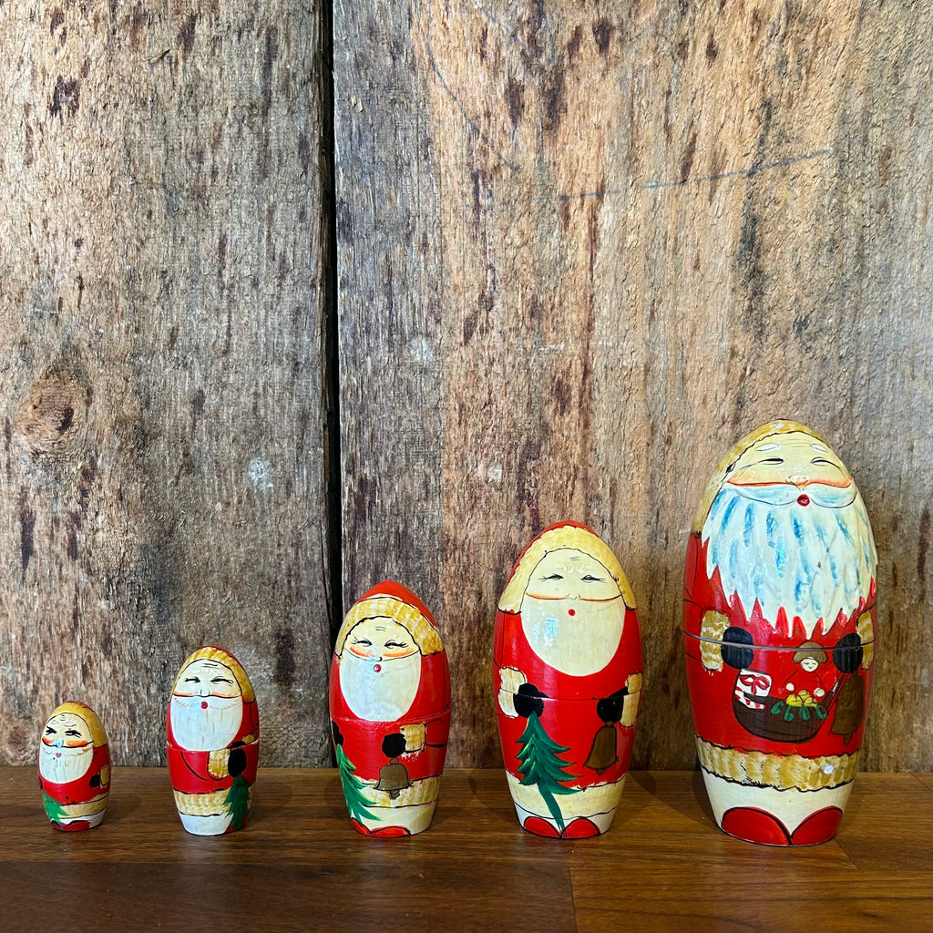 A great vintage set of nesting Santa dolls. Perfect for your holiday displays.