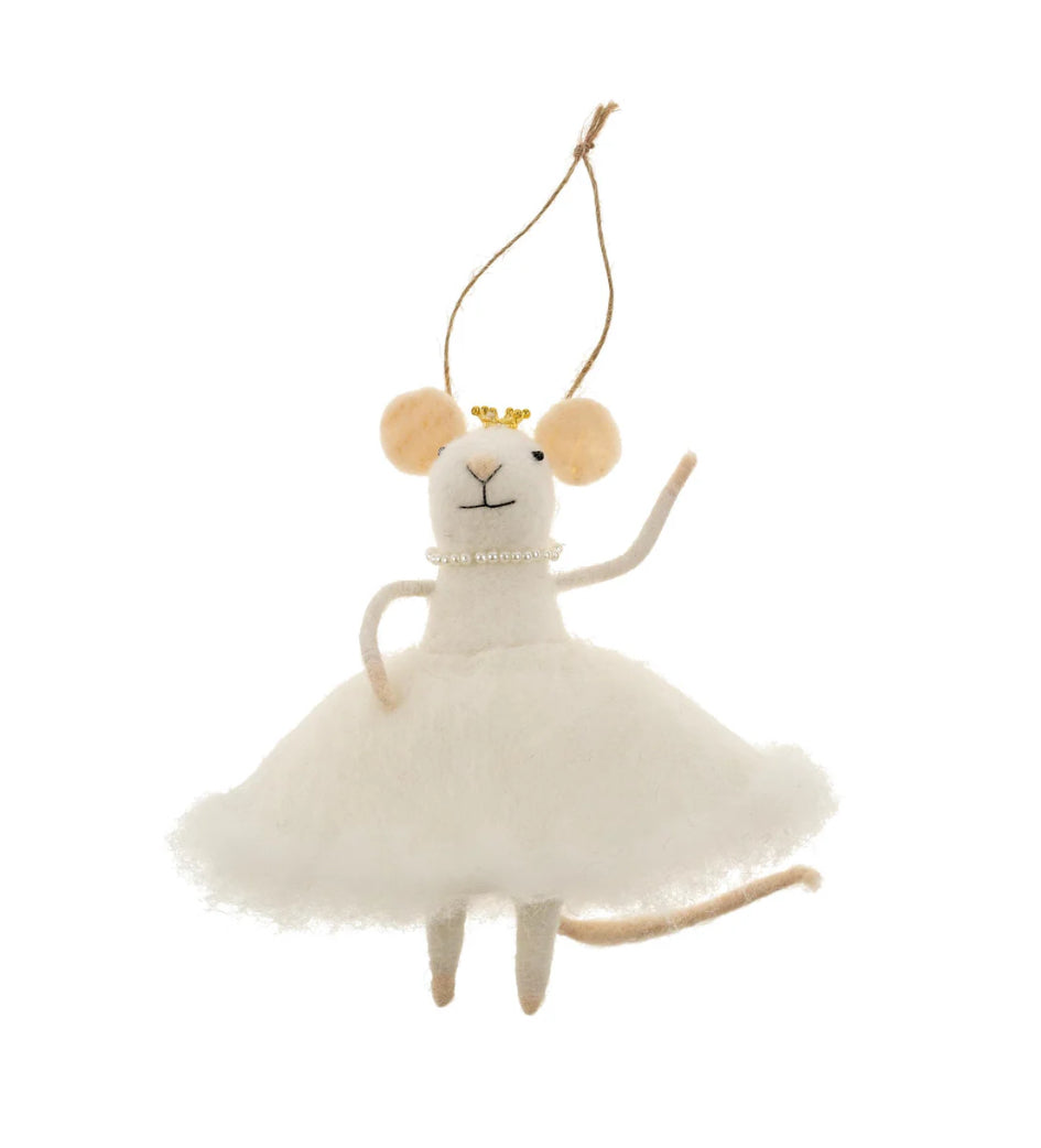 Add whimsy to your tree with a cute mouse ornament. Made from wool