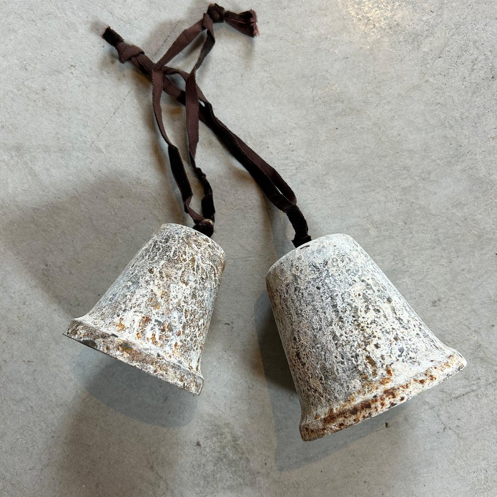 Pretty metal bell with a white washed finish.  Perfect for the tree or wreath.