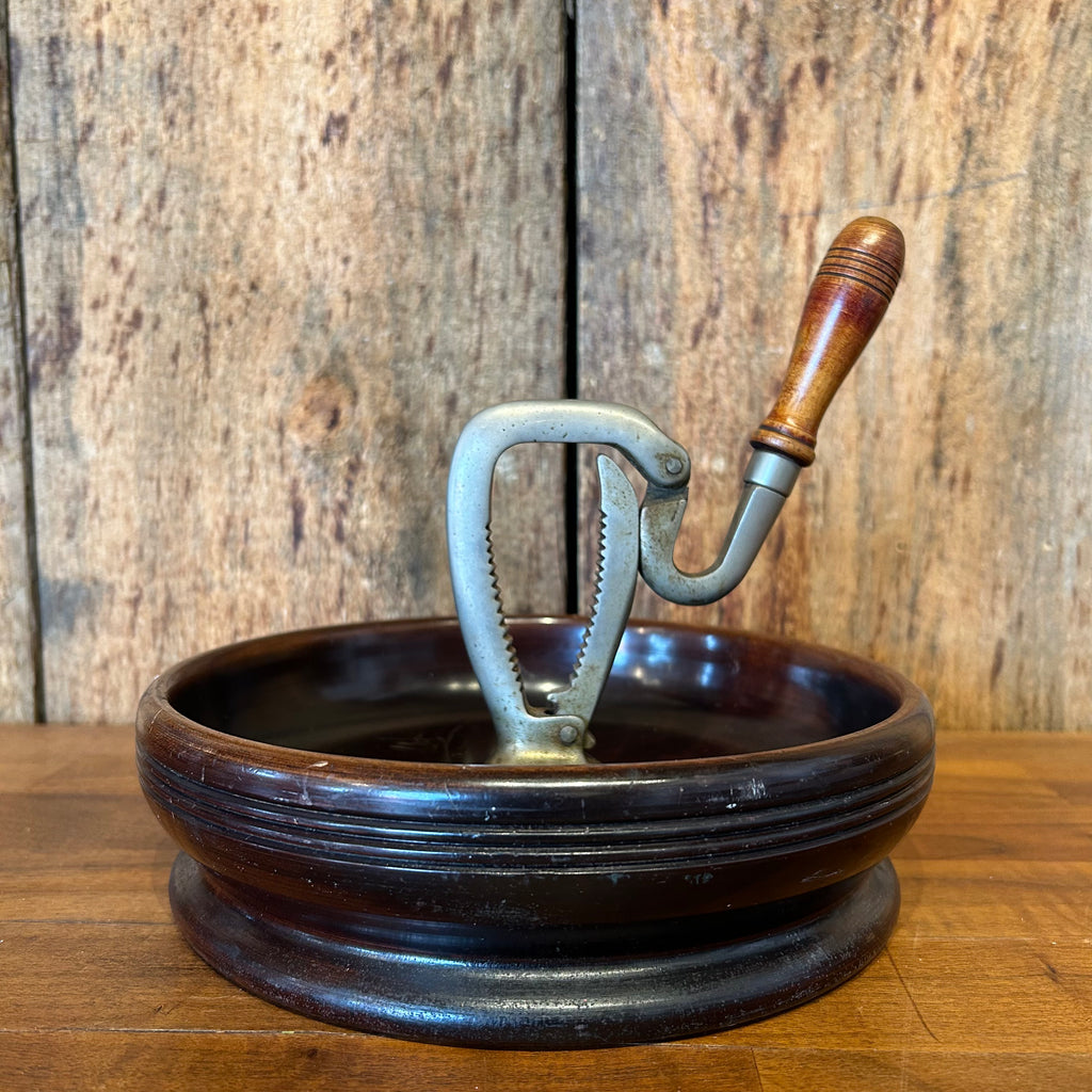 A great old wood nutcracker bowl with the nutcracker built right in.